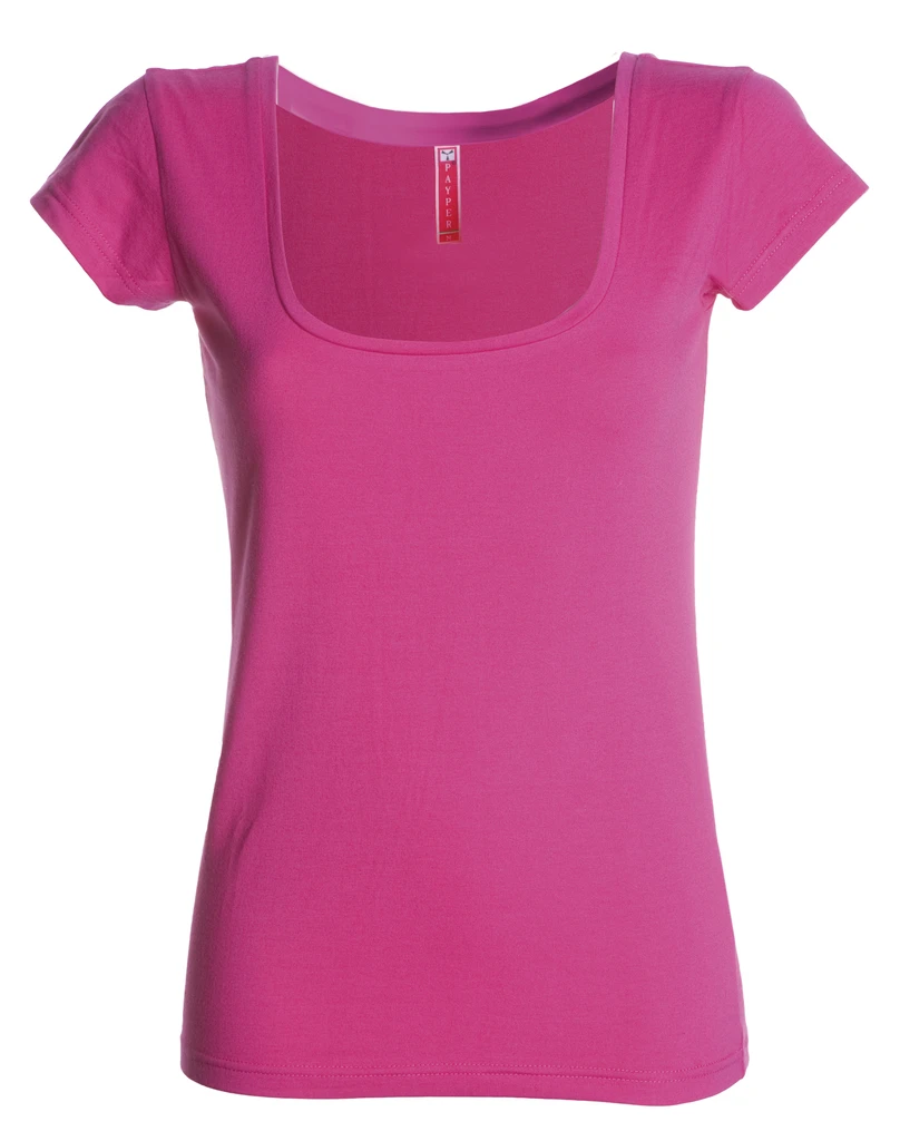 Women’s short-sleeved square neck fitted t-shirt, with 1 cm neckband, side seams