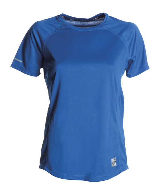 Women’s technical/sports fitted t-shirt with raglan sleeves, double stitched side seams for greater comfort, shaped bottom and longer at the back, reflective insert on the sleeves and back of collar, contrasting neck tape, transfer label