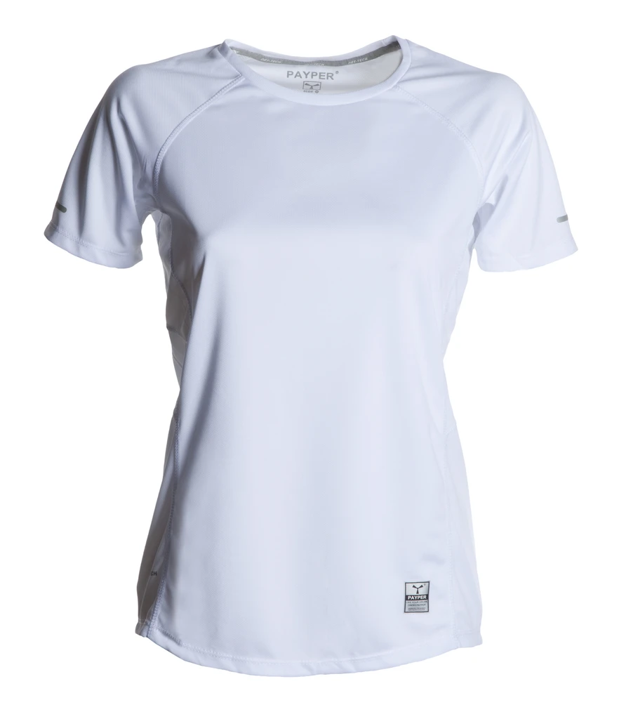 Women’s technical/sports fitted t-shirt with raglan sleeves, double stitched side seams for greater comfort, shaped bottom and longer at the back, reflective insert on the sleeves and back of collar, contrasting neck tape, transfer label
