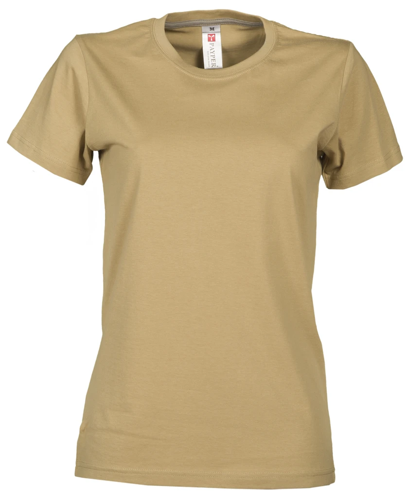 Women’s short-sleeved fitted crew neck t-shirt, with 1.5 cm spandex mix rib neckband with top stitching on the front, contrasting shoulder-to-shoulder reinforcement tape visible on the inside collar, stretch seams, side seams