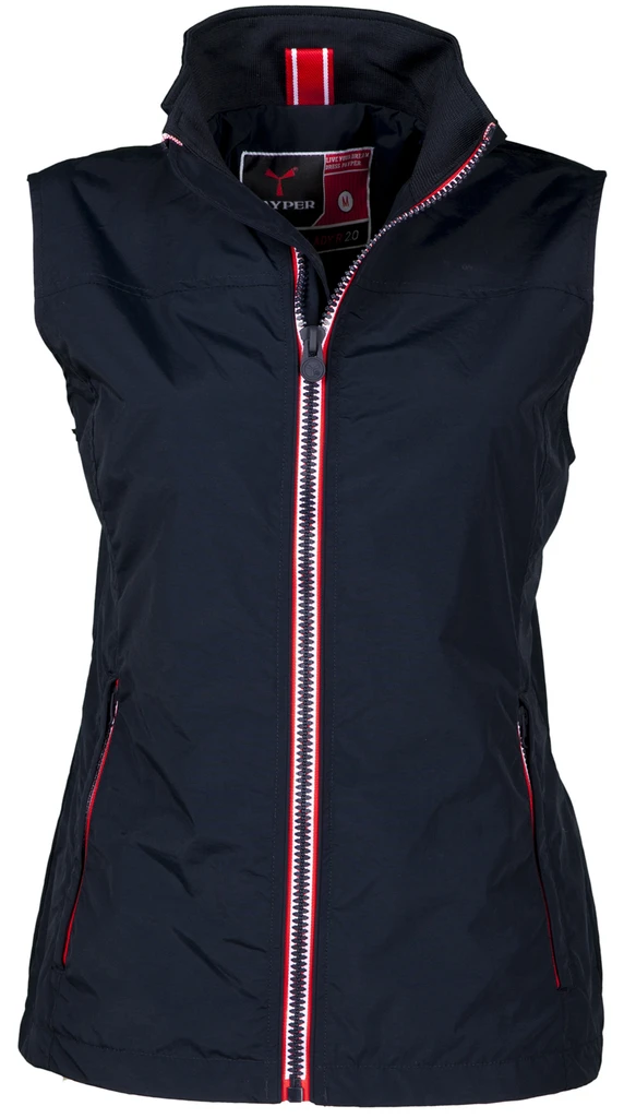 Women’s comfort-fit vest, 8 mm contrasting zip, two outer pockets with concealed zip. Unpadded, mesh lining, one inner zip pocket with opening for smartphone headphones, zip on the chest and bottom for easier printing and embroidery