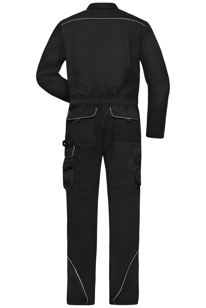2 front pockets, 2 back pockets with pocket flap, several tool pockets