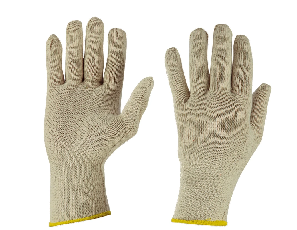 Thread 10G cotton gloves, edged knit cuff; Features: soft - Strengths: comfort, sensitive, precision; Areas of application: light, delicate use, precision assembly and handling in dry conditions