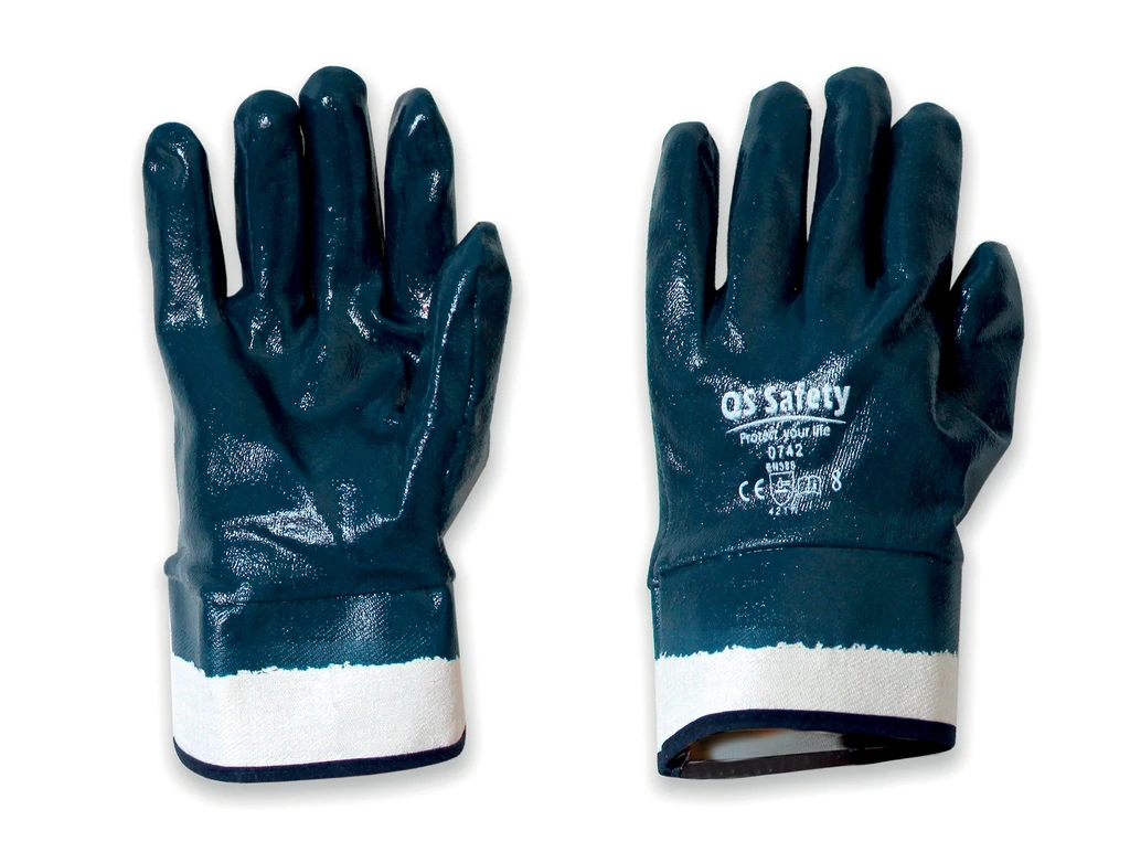 NBR gloves, fully lined, long cuff, cotton-jersey coated; Features: sturdy, very resistant; Strengths: fit, grip, protection, resistant to liquids, practical; Areas of application: heavy-duty handling, metals, sharp and abrasive materials, oil, grease, dirt, hydrocarbons, lubricants