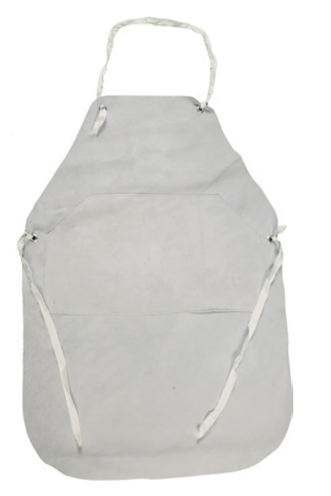 Cowhide split leather apron; Size: 60 x 90 cm; split leather reinforcement; Features: sturdy, very resistant; Strengths: protection; Areas of application: heavy-duty handling, suitable for contact with hot, deburred material