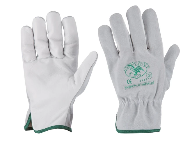 Top grain with split leather back edged; Features: soft, strong, resistant; Strengths: comfort, easy to use; Areas of application: general handling in dry conditions