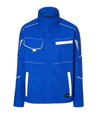 Light, elastic canvas, perfect, comfortable fit thanks to elasthane and an ergonomic cut, Stand-up collar on the inside with soft fleece, ergonomically shaped sleeves, Full-length concealed zip with storm flap and chin cup, inner sleeve cuffs, Zipped side pockets, breast pocket and inside pocket, Breast pocket with flap and velcro, mobile phone pocket inside, Reflective elements on sleeves and at the back, Washable at 60°C, suited for tumble drying, Buttons and zips: In order to avoid the product in hand being damaged, all the buttons and zips are concealed.