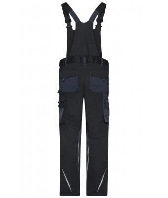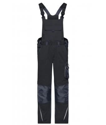 Specialized workwear pants with bib, with functional details and flexibly adjustable elastic waistband