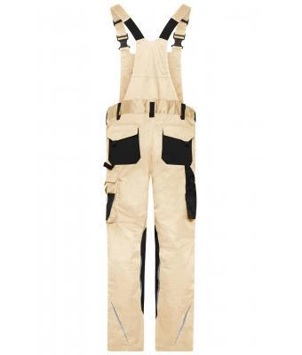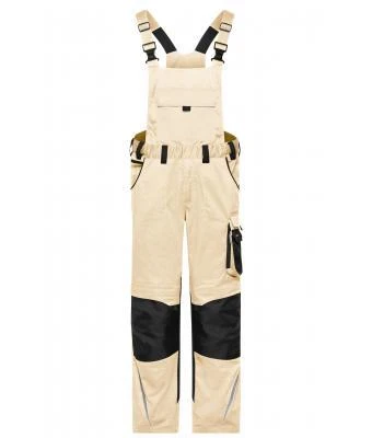 Specialized workwear pants with bib, with functional details and flexibly adjustable elastic waistband
