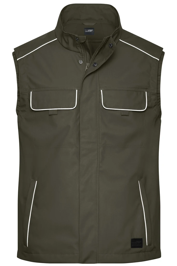 Breast pockets with pocket pouch sewn on only on one side to facilitate