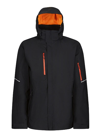 Composition: 100% Polyester (Waterproof and breathable Isotex 10000); Weight: 108 gsm; Thermo-reflect lining panel for heat retention, polyester mesh lining, RFID pocket protection, concealed hood with adjusters, 2 zipped lower pockets and waterproof chest pocket, sleeve pocket with hi-tech water resistant zip, shaped stormflap, taped seams, adjustable cuffs and shockcord hem, reflective details for enhanced visibility, conforms to EN343:2003A1:2007, Class3:2
