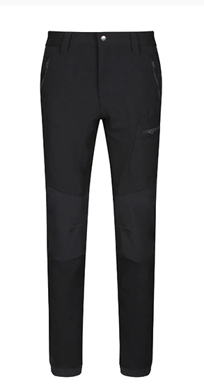 Composition: 100% polyester; Weight: 190/245 gsm; Woven stretch Softshell fabric, Ripstop stretch fabric to knee and seat panels, durable water repellent finish, wind resistant, special Features, part elasticated waist, multi pocketed with front and rear zipped pockets, this product has no external logo branding
