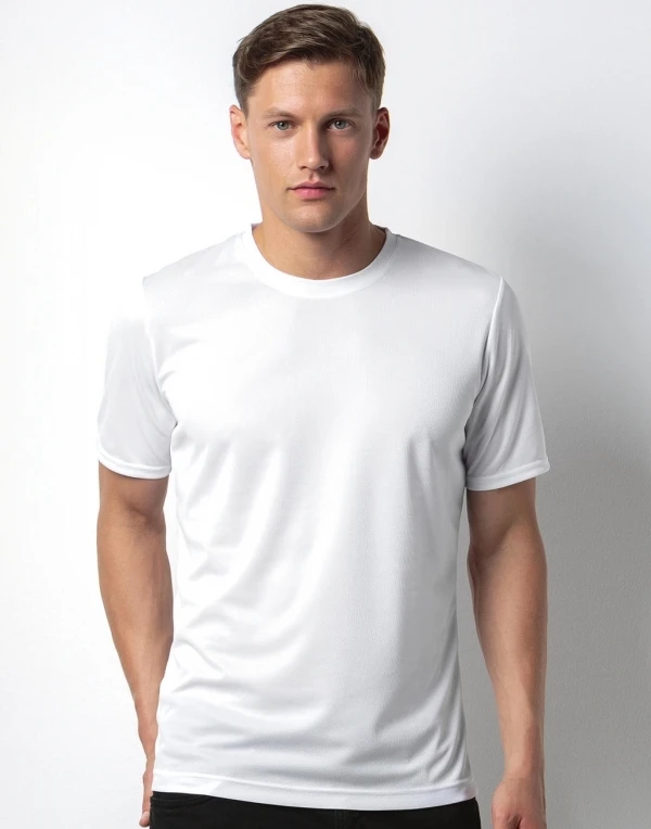 150 gsm • 100 % polyester • reinforced shoulder seams • neck band • double topstitching on sleeve and bottom hem • side seams.