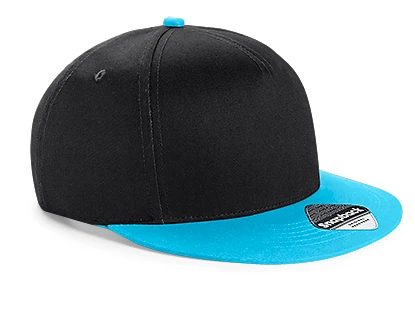 TearAway label for ease of rebranding, 5 panel design, flat peak, authentic peak sticker, stitched ventilation eyelets, contrast detailing, retro style Snapback size adjuster, adjustable youth sizing (53 - 58cm)