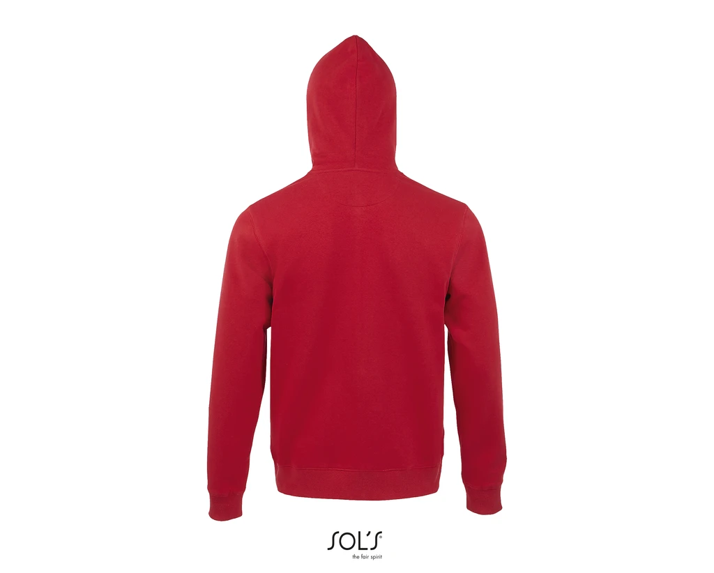 QUALITY: FLEECE 280 LSF (Low Shrinkage Fabric) - 80% ringspun cotton, 20% polyester, Brushed lining, Outside: 100% cotton; Set-in sleeves, 2 kangaroo pockets, Cut and sewn, Lined hood with tone-on-tone drawstring, 2x2 ribbed cuffs and hem, Half moon inside collar, Taped neck; Certificate: STANDARD 100 by OEKO-TEX®